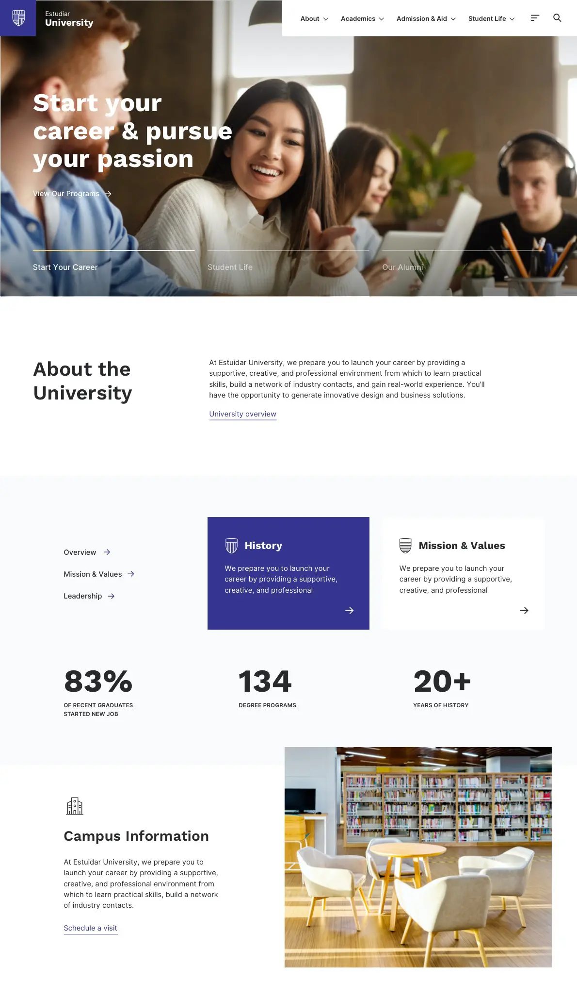 Dedicated theme for Schools and Universities
